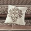 Update your bedroom with the Princeton comforter set. Princeton creates character with intricate geometric and damask prints in a mix of brown, red, and ivory tones. This comforter set includes two standard shams and three embroidered decorative pillows in brown, khaki, and ivory with embroidery and pieced details that pull the whole look together. Made from polyester jacquard and a brushed fabric reverse this comforter is soft to the touch and is machine washable for easy care.