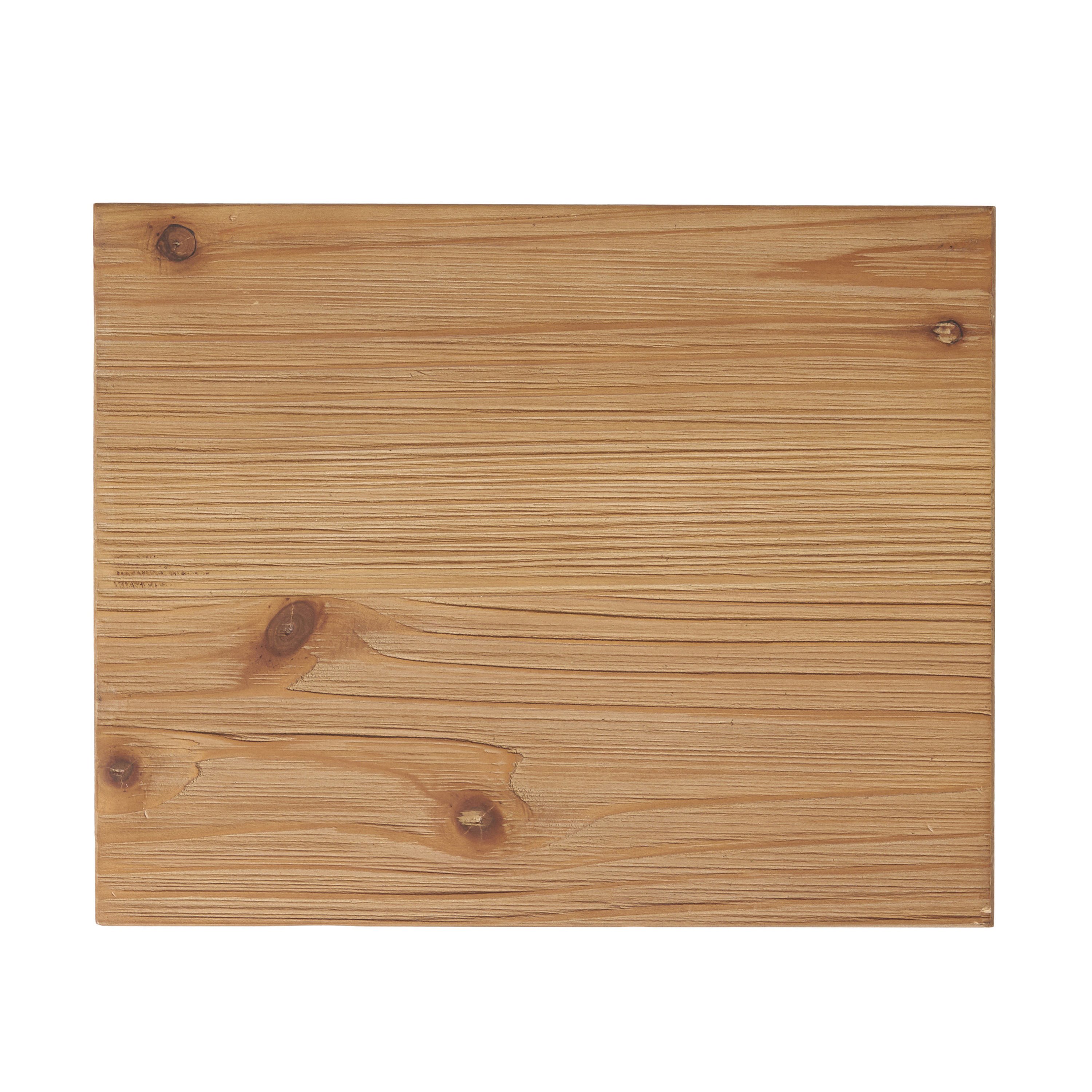 Its dark iron base contrasts crisply with a natural fir wood top to pair well with decor styles from mid-century to contemporary.