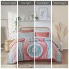 The Intelligent Design Loretta Boho Comforter Set with Bed Sheets brings a bright, casual update to your bedroom. A large medallion print, in coral and aqua, runs down the center of the comforter with subtle bohemian details highlighted in white. Coordinating shams (1 in Twin/TwinXL) with embroidered borders complement the comforter. A decorative pillow with ruched and pieced detailing and a solid coral bed skirt finishes the look. Also included is a complete sheet set that reiterates the bohemian motif. This bedding set is also OEKO-TEX certified, meaning it does not contain any harmful substances or chemicals to ensure quality comfort and wellness.