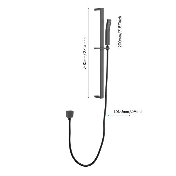 Package Includes: Matte black slide bar handheld shower includes handheld sprayer; sliding bar; shower holder; wall supply elbow; 59inches hose; hardware pack; and detailed installation guide.