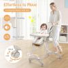 4.Effortless to Move: Move this high chair effortlessly with four 360° wheels. Whether you need to transport it from the kitchen to the dining area or simply need to reposition it, the wheels make it easy. When it's time for your baby to eat, you can lock the wheels to keep the chair in place while you attend to other tasks nearby.
