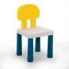 Material: PP;Building Block Table Color: White table + building block board slides (dark cyan, gray, yellow, white) + white tabletop + dark cyan table legs + white storage box;Square Chair Color: Two square chairs (yellow, white, and dark cyan mixed).Product Details:The overall product size of the table is 81.5 (L) * 37.5 (W) * 45.5 (H) CM (including 4 storage boxes), and the product size without the storage boxes is 60 * 37.5 * 45.5 cm (with added white heightening pads, which can raise the table by 5 CM);One side of the tabletop is a building block board slide, and the other side is a tabletop, with a size of 58 * 35.5 * 1.3 CM; the internal storage size of the table is 55 * 32.5 * 9 CM;The length of the four table legs is 33.5 CM; the size of the four detachable storage boxes is 17.5 * 10.7 * 4.5 CM;The overall size of the chair is 23 * 21 * 44 CM, the backrest size is 21 * 21 CM, the height of the chair surface from the ground is 23.5 CM, and the length of the chair legs is 22 CM.Building Block Colors: Random mix of 8 colors (red, dark green, light blue, grass green, yellow, orange, dark blue, white).Remarks: 1. A set of building block table products includes 1 rectangular table, 2 square chairs, 100 building blocks (slide with 2 ball models), 4 storage boxes, 4 heightening pads, and 8 anti-slip chair pads; 2. The product includes one set of instructions in English.