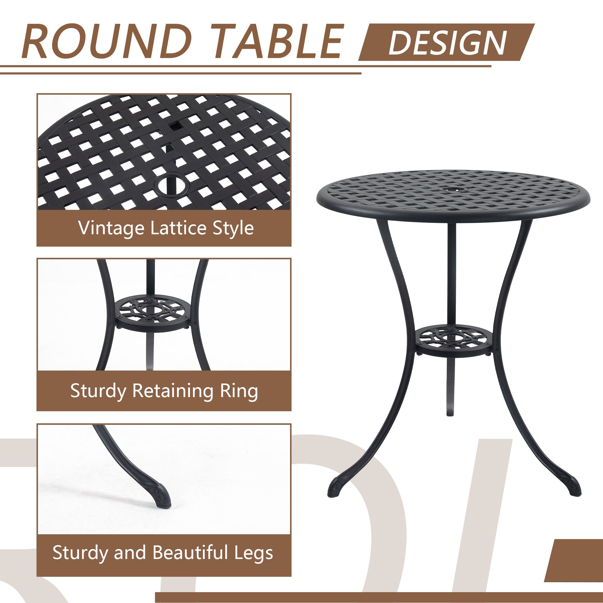 [Garden Dining Table with Umbrella Hole]This round bistro table has a 1.97" umbrella hole which fits most patio umbrellas (not included). It takes you on a relaxing holiday without being affected by extra ultraviolet rays & rain.