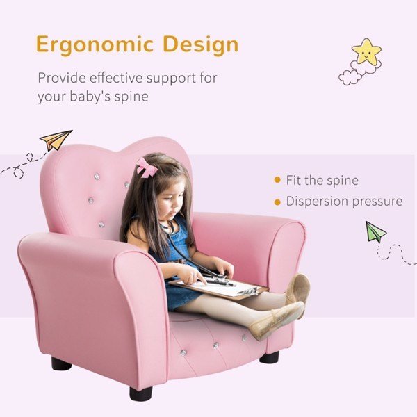 Qaba Kids Sofa Toddler Tufted Upholstered Sofa Chair Princess Couch with Diamond Decoration -AS