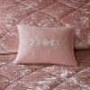 Create a lush and relaxing atmosphere in your bedroom with the Intelligent Design Felicia Velvet Comforter Set. The blush comforter is made from crushed velvet and features diamond quilting for a luxurious look. Matching crushed velvet sham(s) and an oblong decorative pillow complement the comforter to complete the modern style bedding set. Machine washable for easy care, this velvet comforter set uses hypoallergenic filling in the comforter and decorative pillow for extra softness and comfort. Feel the warmth and lustrous beauty of this velvet comforter set when you incorporate it into your bedroom décor. Items in the set may come in a rolled or compressed packaging, which will need to be fluffed up or steam ironed before use to remove wrinkles.